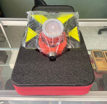 Prisma detail (Mini Prisma) memiliki fungsi utama sebagai target pantulan sinar laser atau gelombang elektromagnetik dari alat ukur Total Station untuk menghitung jarak dan koordinat.