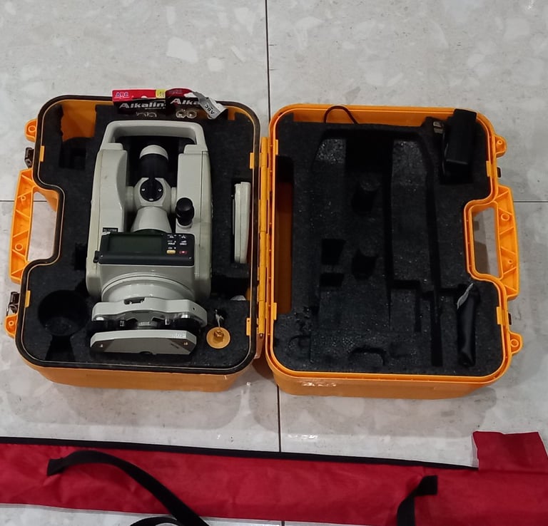 alat ukur elektronik yang digunakan dalam survei pemetaan untuk mengukur sudut, jarak, dan elevasi suatu titik dengan presisi tinggi. Alat ini menggabungkan fungsi theodolite (pengukur sudut) dan EDM (Electronic Distance Measurement).